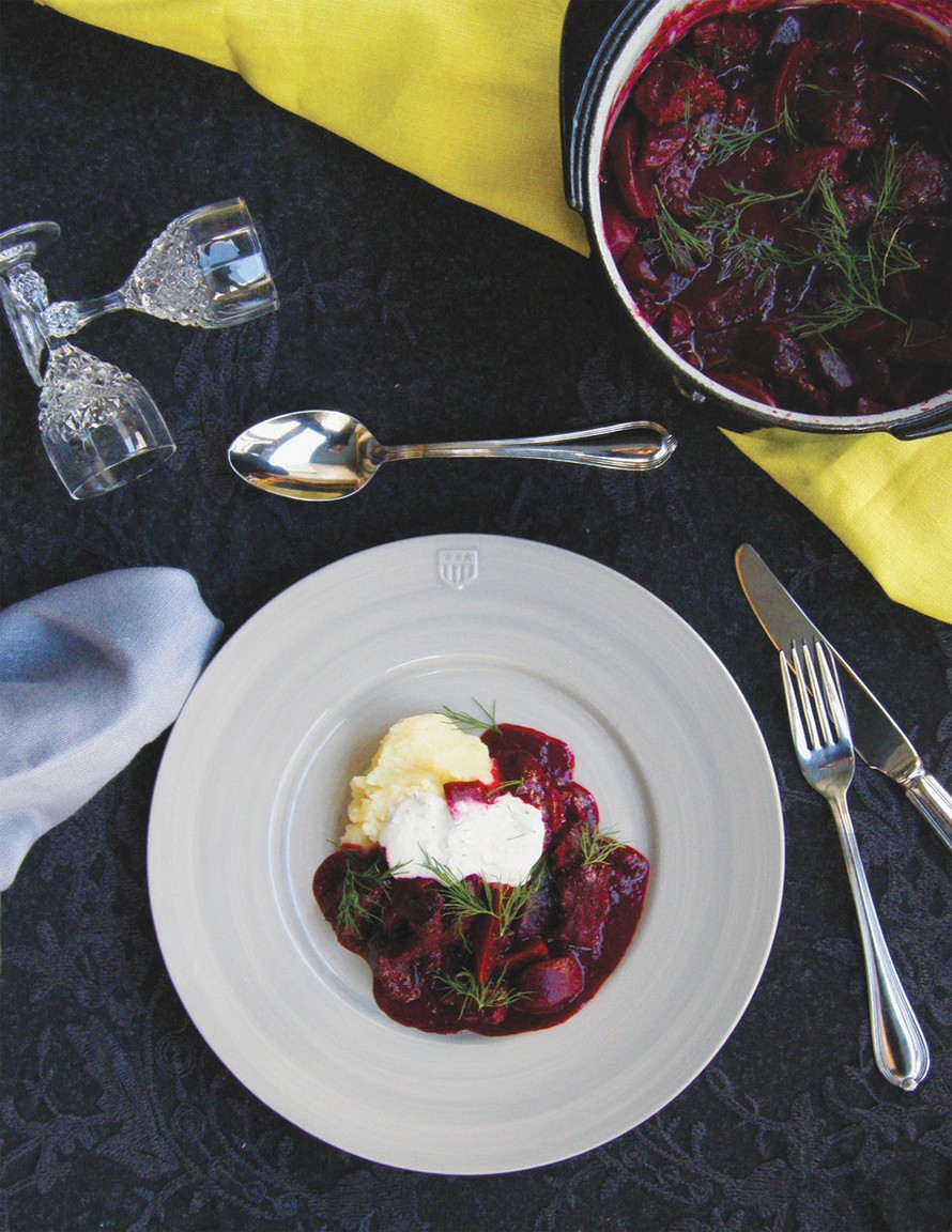 Talven koleita päiviä lämmittää mukavasti pitkään mureaksi hautunut punajuuri-lihapata. Tarjoa tämä lempeä herkku piparjuurikastikkeen ja pehmeän perunamuusin kera.