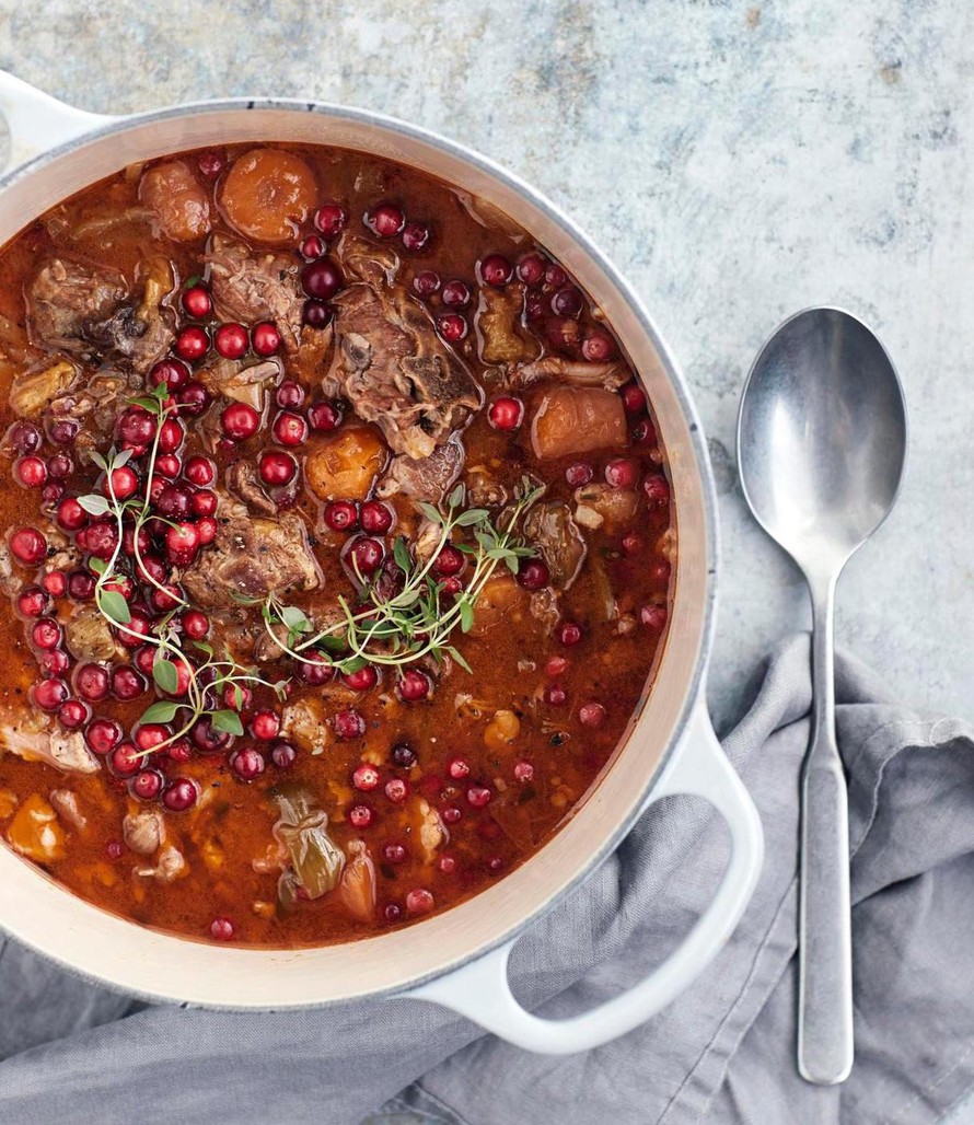 Syyspata parhaimmillaan! Puolukan kirpeä hapokkuus on omiaan lampaanlihan kanssa. Myös vaalea vehnäolut antaa pataan raikkautta.