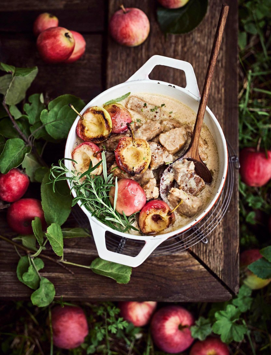 Pataan antavat makua syksyn viimeiset omenat sekä siiderin muodossa että hieman karamellisoituina lohkoina. Lisäksi pata saa makua sinapista. Kaiken pyöristää yhteen täyteläinen ranskankerma. Pata kannattaa suurustaa, kun kypsennystä on jäljellä puolisen tuntia.