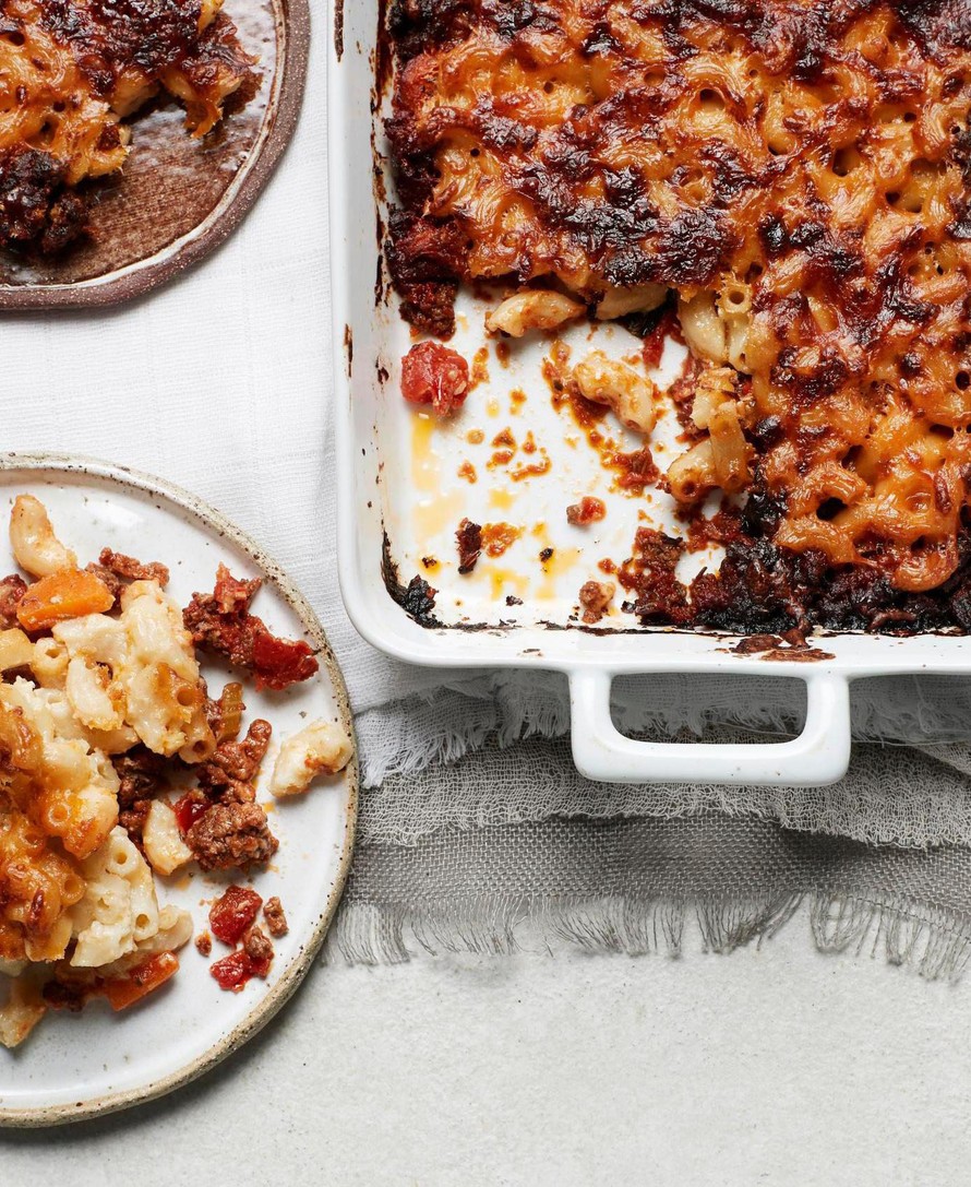 Makaronilaatikko nousee uudelle tasolle, kun mehevöität sen juustoisella béchamelkastikkeella ja syvän makuisella jauhelihakastikkeella lasagnen tapaan.