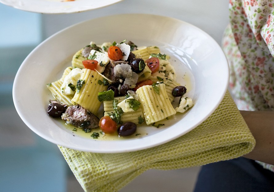 - Keitä pasta pakkauksen ohjeen mukaan, valuta ja pane takaisin kattilaan. Lisää joukkoon liha- ja sokerihernepalat sekä makusi mukaan pestoa ja paloiteltua fetaa. Sekoita nopeasti ja annostele lautasille.