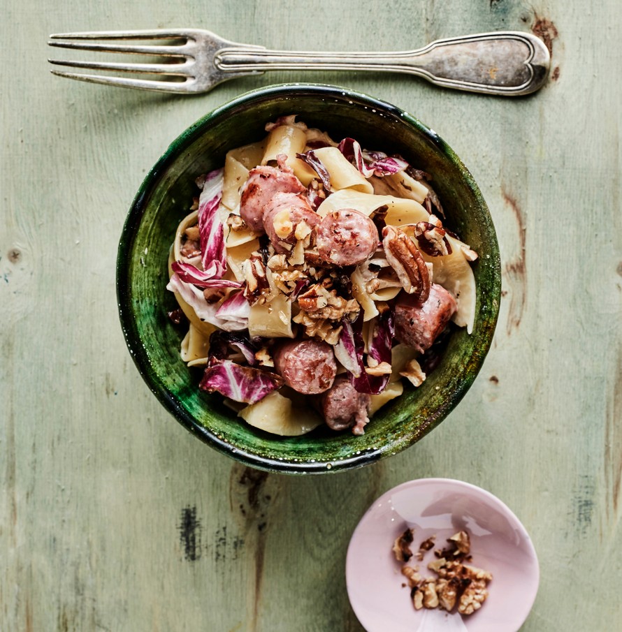 Tutustu rapeaan ja kirpeään punasikuriin pastan muodossa! Tässä ohjeessa punasikuri solmii makuliiton täyteläisen makkaran kanssa.
