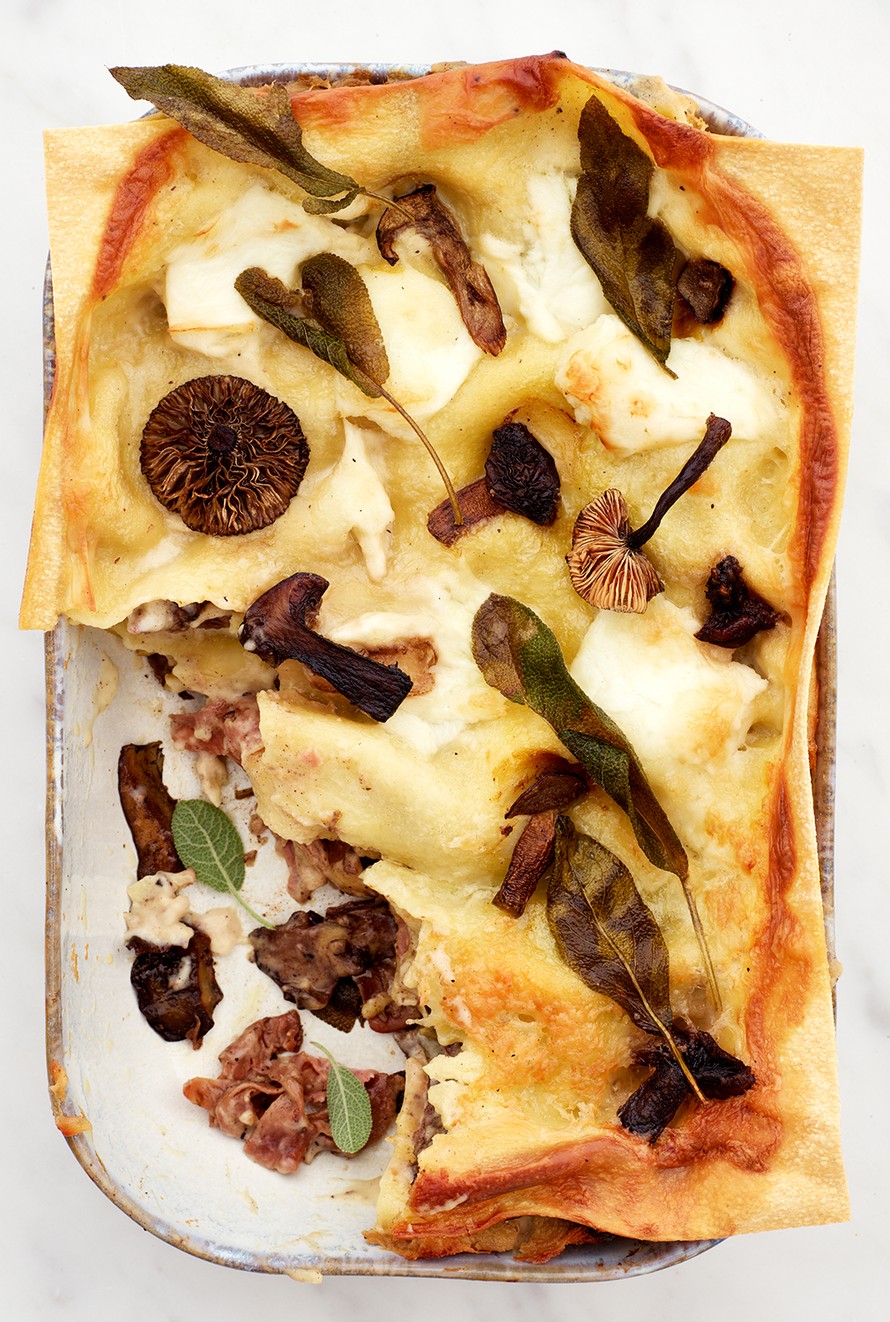 Tämä lasagne on omistettu kaikille, jotka rakastavat valkokastiketta. Koska lasagne ei nirsoile, voit upottaa siihen kaikki metsäreissun aarteet lampaankäävistä haperoihin, rouskuihin ja suppiksiin.