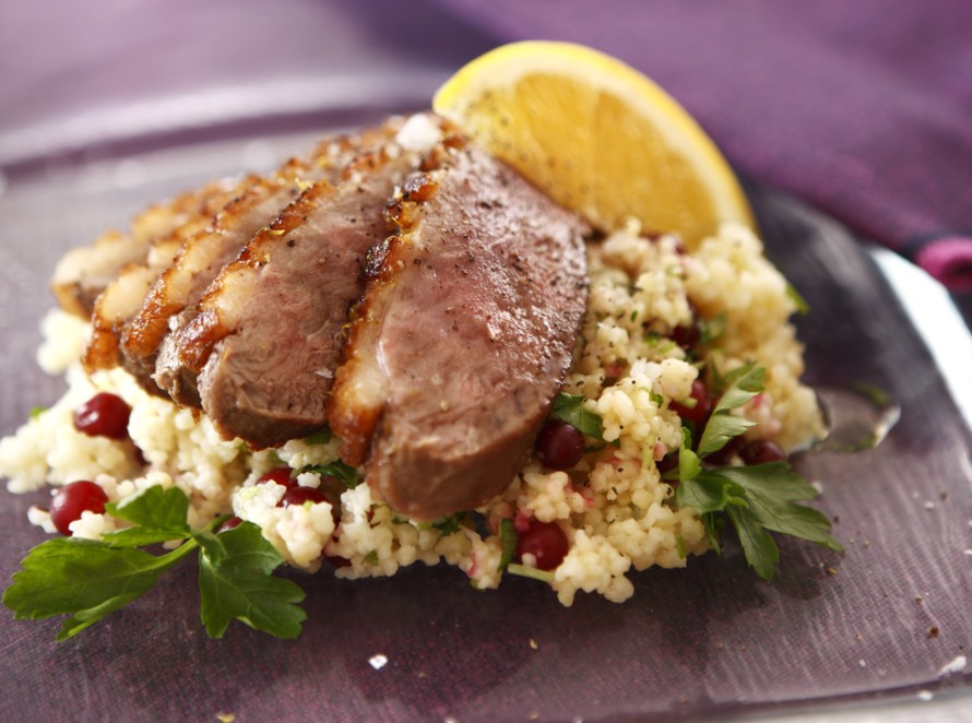 Tämä annos toimii treenin jälkeen: palauttavat hiilihydraatit saat couscoucista ja proteiinin ankasta.