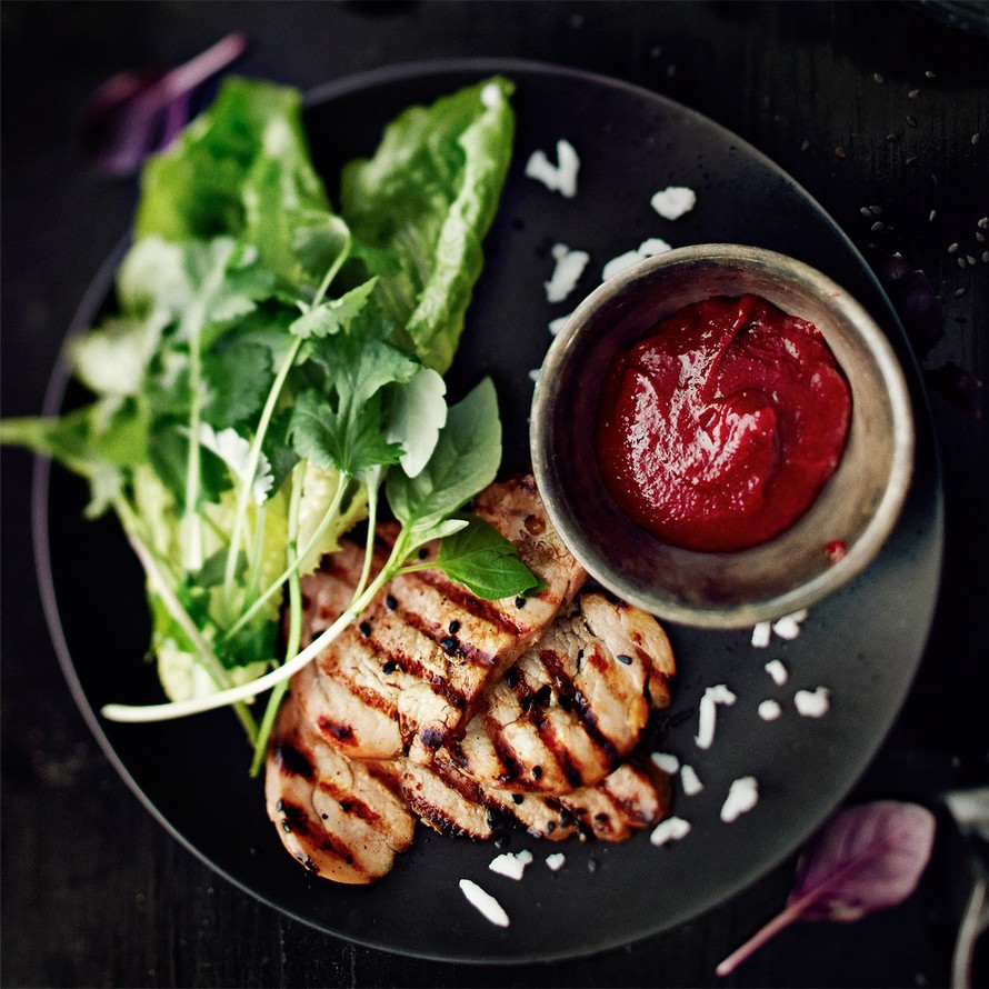 - Ota liha noin puoli tuntia ennen paistamista huoneenlämpöön. Leikkaa fileestä ohuita viipaleita. Paista öljytyssä grillissä tai parila- tai paistinpannussa kypsiksi, noin 3–6 minuuttia. Kypsennysaika riippuu viipaleiden paksuudesta. Ripottele seesaminsiemeniä päälle.