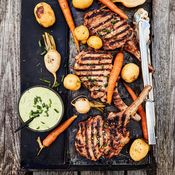 - Grillaa kareita noin viisi minuuttia puoleltaa mielellään kuvun alla ja miedolla lämmöllä. Nosta lihat pois grillistä ja sivele niille runsaasti oliivitahnaa. Leikkaa lihat paloiksi luiden välistä.