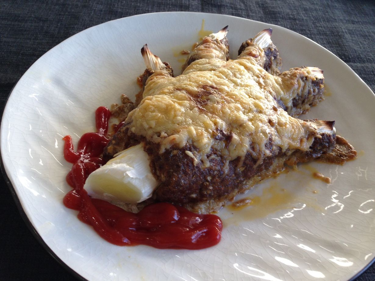 Ei suositella heikkohermoisille! Ällöttävästä ja mausteisesta käsimurekkeesta törröttää purjoluu. Tarjoa halloween-"herkku" ketsuppiroiskeiden kera!