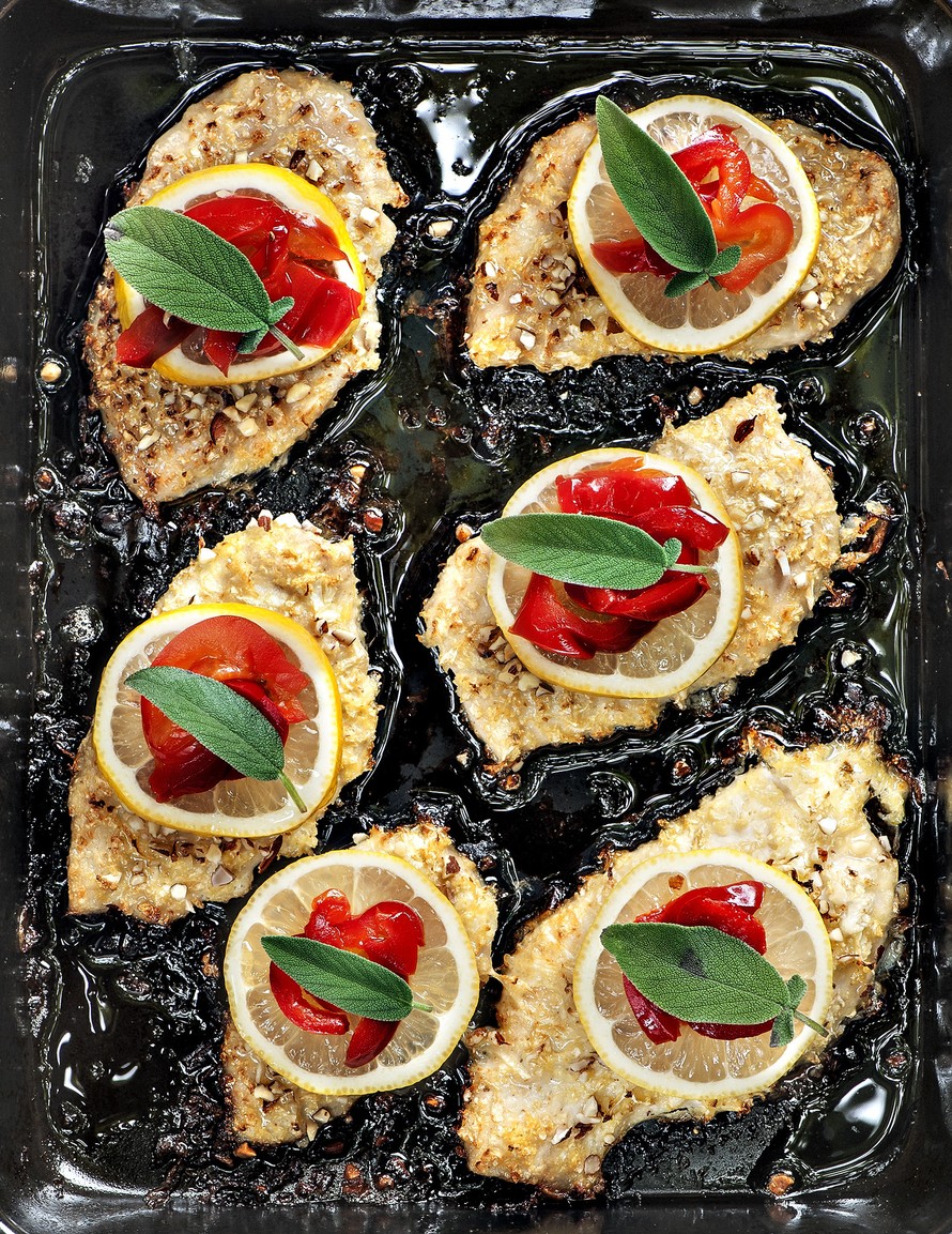 - Koristele sitruunalla, paprikalla ja salvianlehdillä ennen tarjoamista.