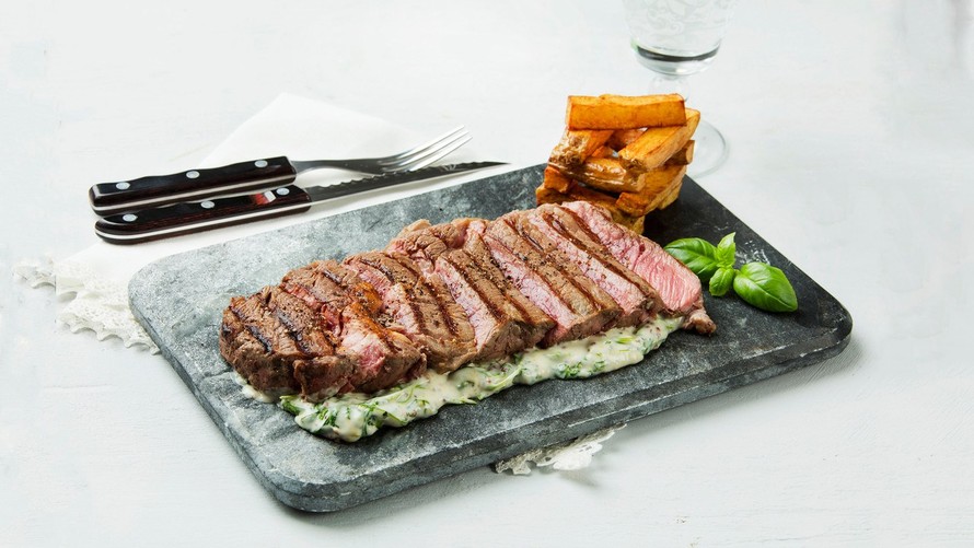 - Ota liha huoneenlämpöön tuntia ennen paistamista ja leikkaa reiluiksi pihveiksi.