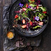 - Siirrä bataatit leivinpaperin päälle uunipellille. Kypsennä uunin keskitasossa noin 20 minuuttia, kunnes bataatit kypsyvät.