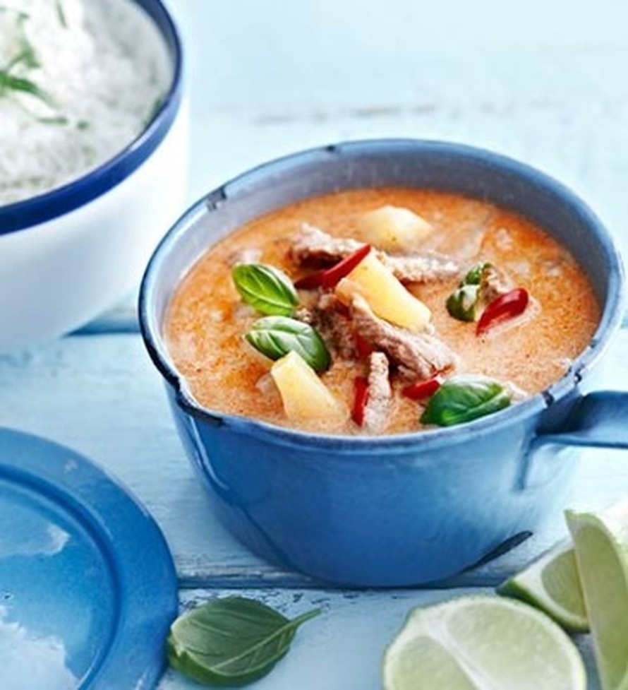 - Ota suikaleet ajoissa huoneenlämpöön. Kuumenna öljy korkeareunaisessa paistinpannussa, lisää pannulle punainen currytahna ja kuumenna sitä pari minuuttia. Lisää suikaleet ja paista kullanruskeiksi.