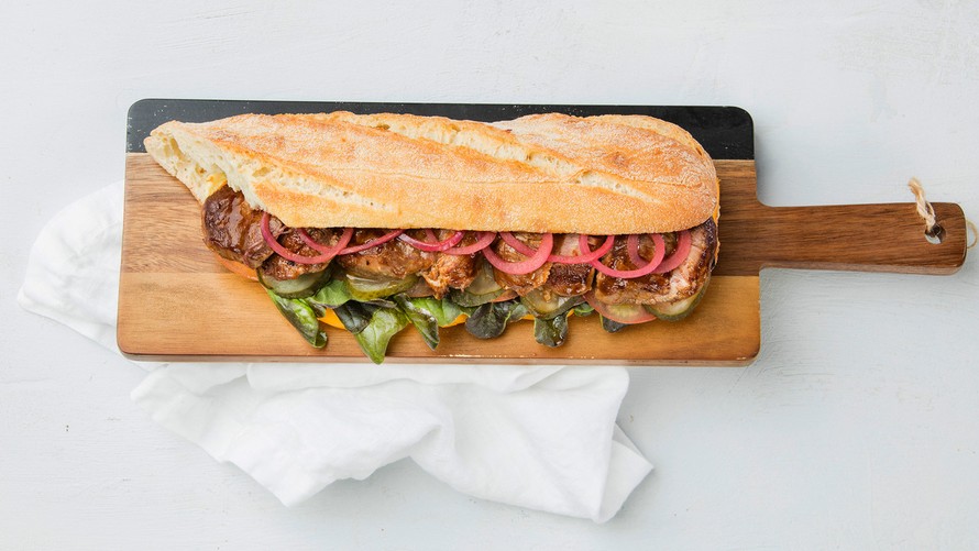 - Laita patongin kansi päälle ja leikkaa patonki neljään osaan. Kääri subleipä leivinpaperiin, josta se on helpompi syödä.