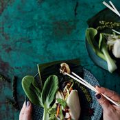 - Huuhtele ja leikkaa kevätsipulit reiluiksi paloiksi. Paista parsat ja sipulit oliiviöljyssä halkaistun chilin kanssa. Lisää lopussa joukkoon kaprismarjat. Mausta suolalla ja pippurilla.