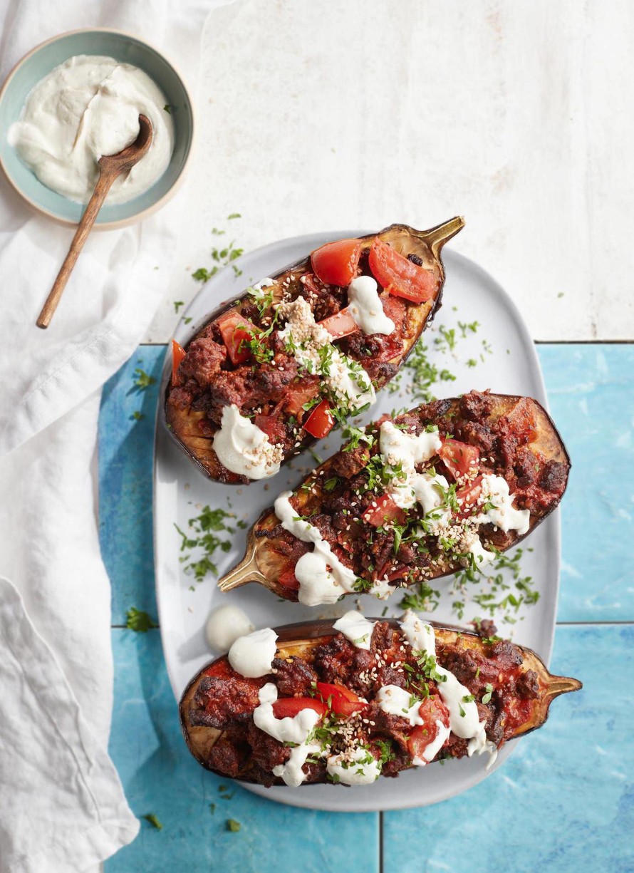 Jauhelihalla ja tomaatilla täytetyt munakoisot ovat lomailijan rento versio moussakasta.