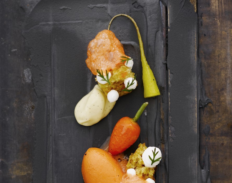 - Kuori porkkanat ja inkivääri ja laita ne kattilaan. Halkaise vaniljatanko ja raaputa siemenet kattilaan. Lisää sitruunankuoren pala, vesi ja sokeri. Keitä miedolla lämmöllä noin 15 minuuttia tai kunnes porkkanat kypsyvät.