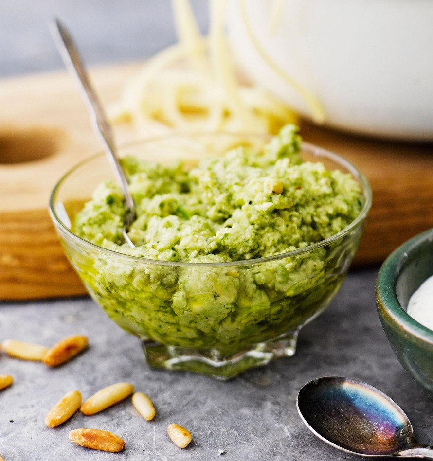 Avokadopesto maistuu hyvältä pastan seassa tai leivän päällä. Kokeile myös dippinä!