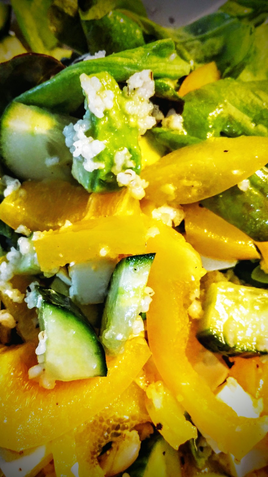 Salaatti itsetehdyllä kastikkeella on aina maukkain ! Ruokaisampi ateria tarjottuna broilerin tai paistetun lohen kanssa.