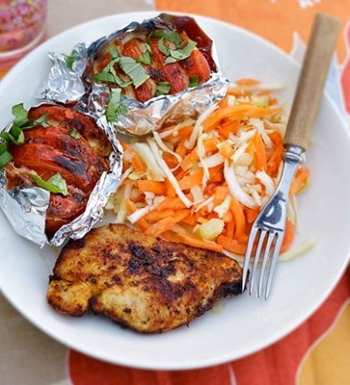 - Kiedo jokainen tomaatti omaan folioonsa ja grillaa yhtä aikaa broilerin kanssa. Nauti heti, kun broileri on kypsää.