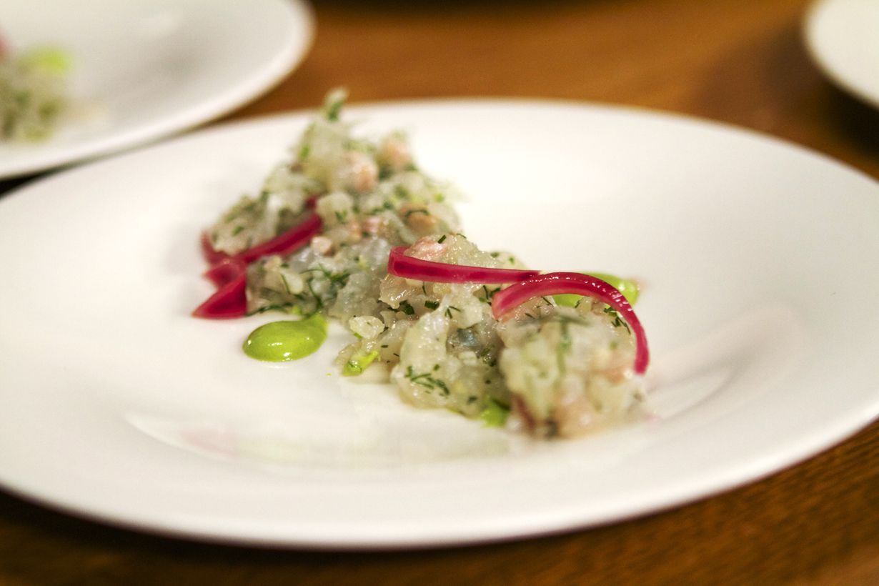 Lisää tillin oksat kiehuvaan veteen, anna olla 30sek. Valuta ja jäähdytä kylmän veden alla. Aja blenderillä pyreeksi oliiviöljyllä ohentaen.