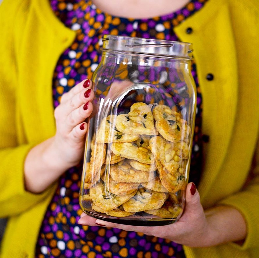 - Voitele piparit munalla, ripottele päälle parmesaania ja muutama pinjansiemen. Koristele halutessasi tuoreella timjamilla. Paista 175 asteessa uunin keskitasolla noin 15 minuuttia.