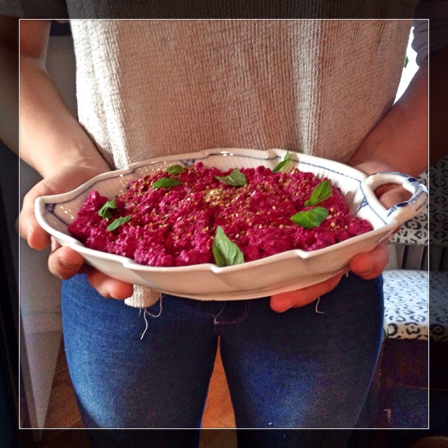 Punajuuri-labneh-tahnan kaunis väri on melkein yhtä hyvä kuin tahnan maku. Voit tuunata makua Lähi-Idän mausteilla, kuten sumakilla tai savustetulla paprikalla. Tahnan voi tehdä 1-2 punajuurella.