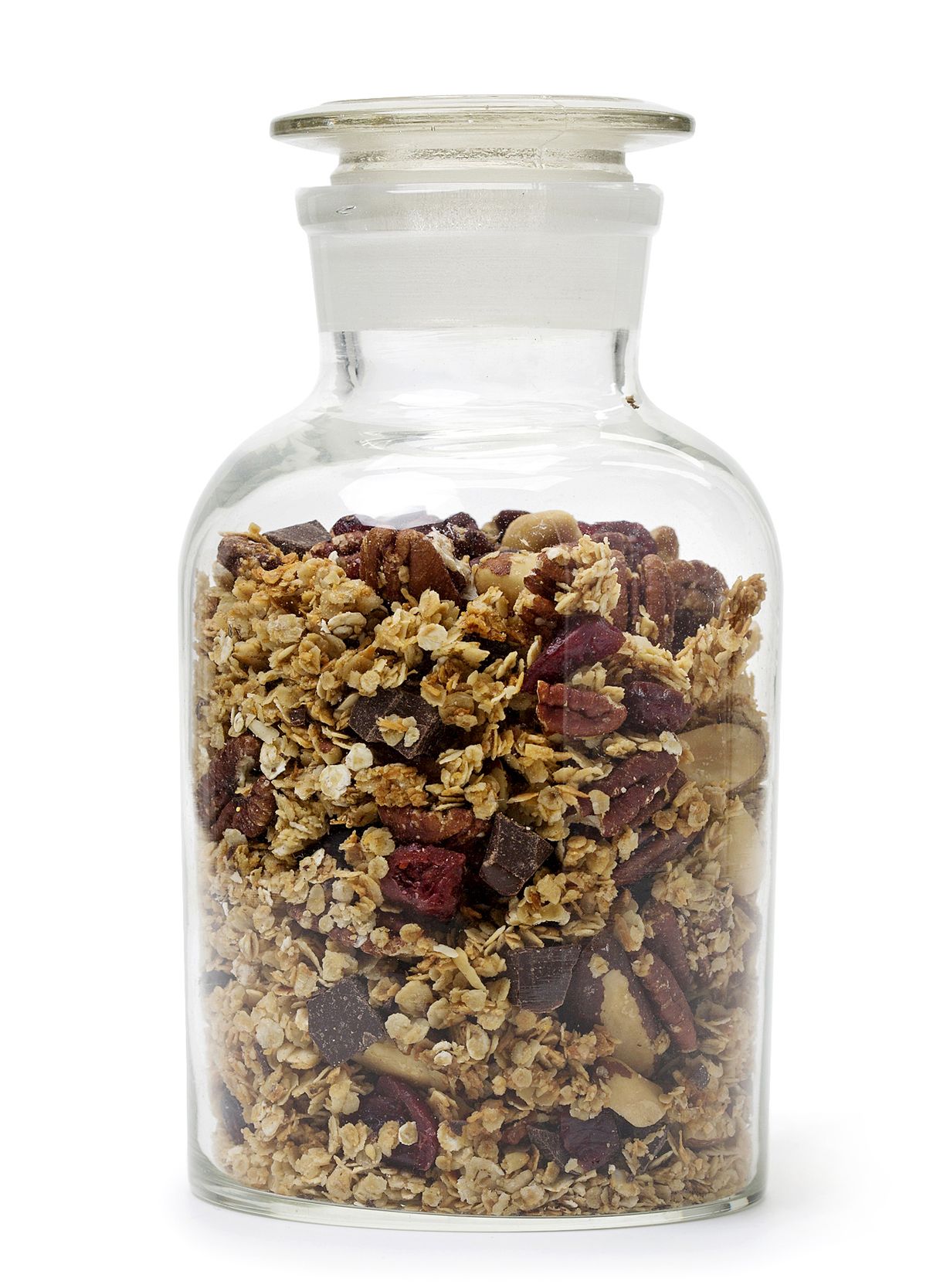 - Mittaa hiutaleet, pähkinät, öljy ja siirappi kulhoon. Sekoita hyvin.