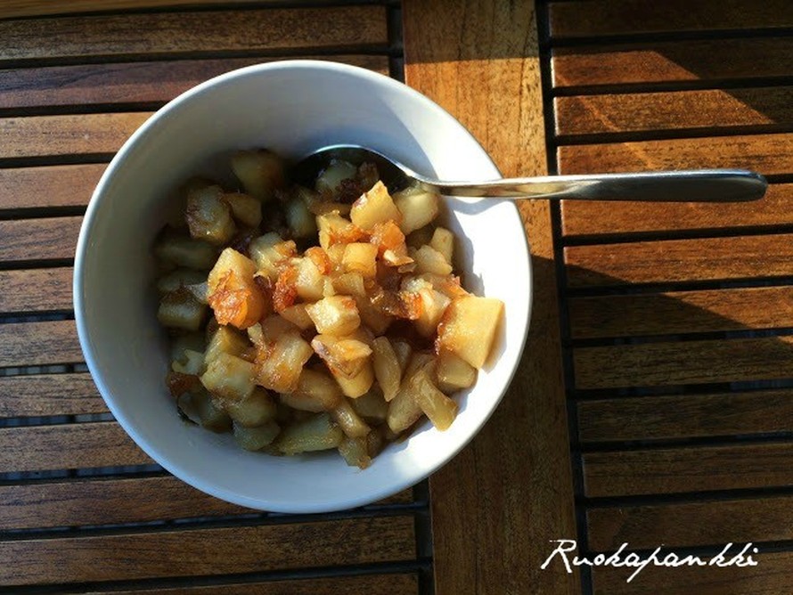 Kuumenna voi-öljyseos pannulla ja lisää hienonnettu sipuli ja valkosipuli. Lisää kuoritut ja kuutioidut maa-artisokat, sekoita. Mausta suolalla. Anna kuullottua. Lisää vesi ja anna maa-artisokan pehmetä. Lisää tarvittaessa vettä.