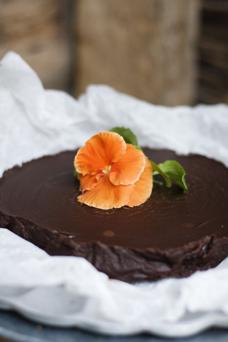 Vuoraa paistovuoka leivinpaperilla, myös reunoiltaan (saat kivan epätasaisen reunan kakkuun). Paista 180 asteessa 25-30 min. Kakku saa jäädä keskeltä pehmeäksi, joten älä paista liikaa! Anna tekeytyä ennenkuin isket lusikkasi kakkuun :)