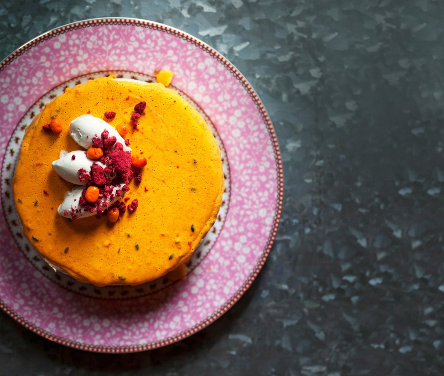 - Ota jäätynyt kakku pois vuoasta. Kaada tyrnikuorrute hitaasti kakulle, niin että se valuu kauniisti myös reunoille.