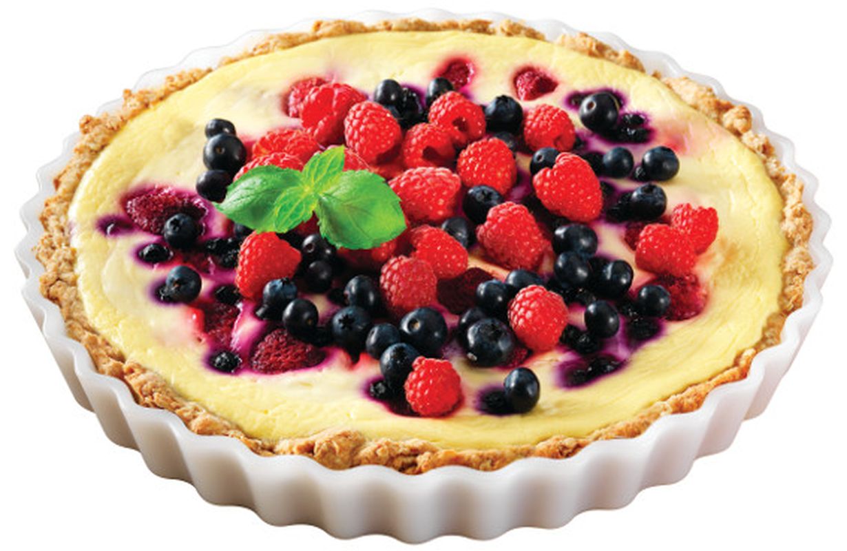 - Levitä marjat piiraspohjalle. Sekoita keskenään maitorahka, muna ja sokeri. Kaada seos marjojen päälle. Paista uunin alaosassa 200-asteisessa uunissa noin 25–30 minuutin ajan.
