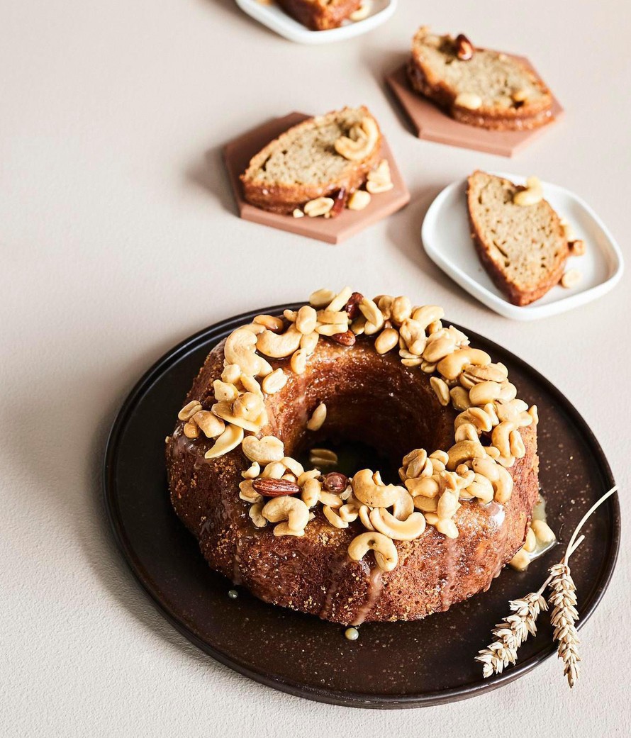 Ripaus suolaa saa makean banaanikakun loistamaan. Tähän kakkuun se lisätään suolapähkinöiden muodossa.