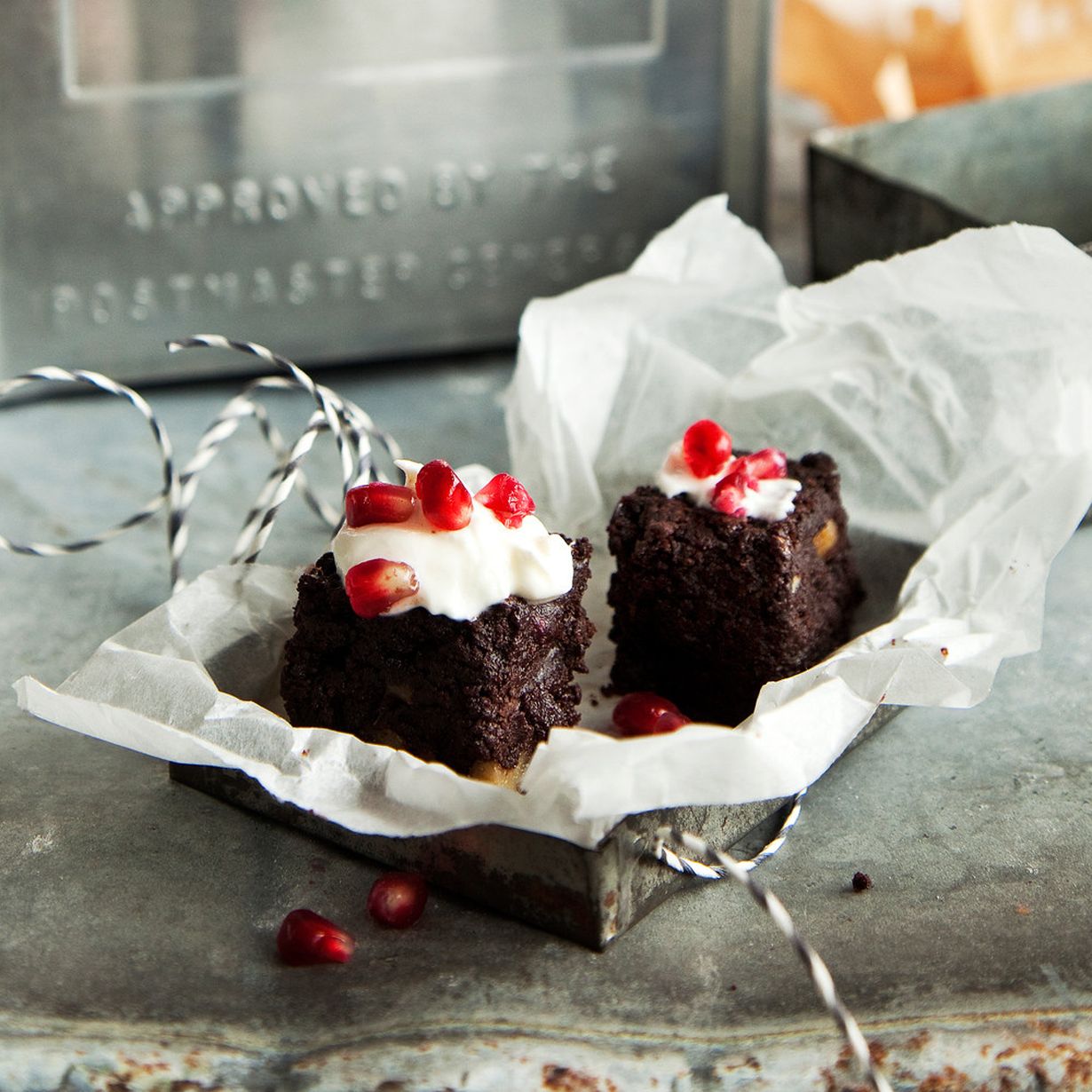 - Anna jäähtyä, leikkaa annospaloiksi ja tarjoa sokereilla maustetun jugurtin ja granaattiomenan siementen kanssa. Browniet säilyvät huoneenlämmössä 3 päivää.