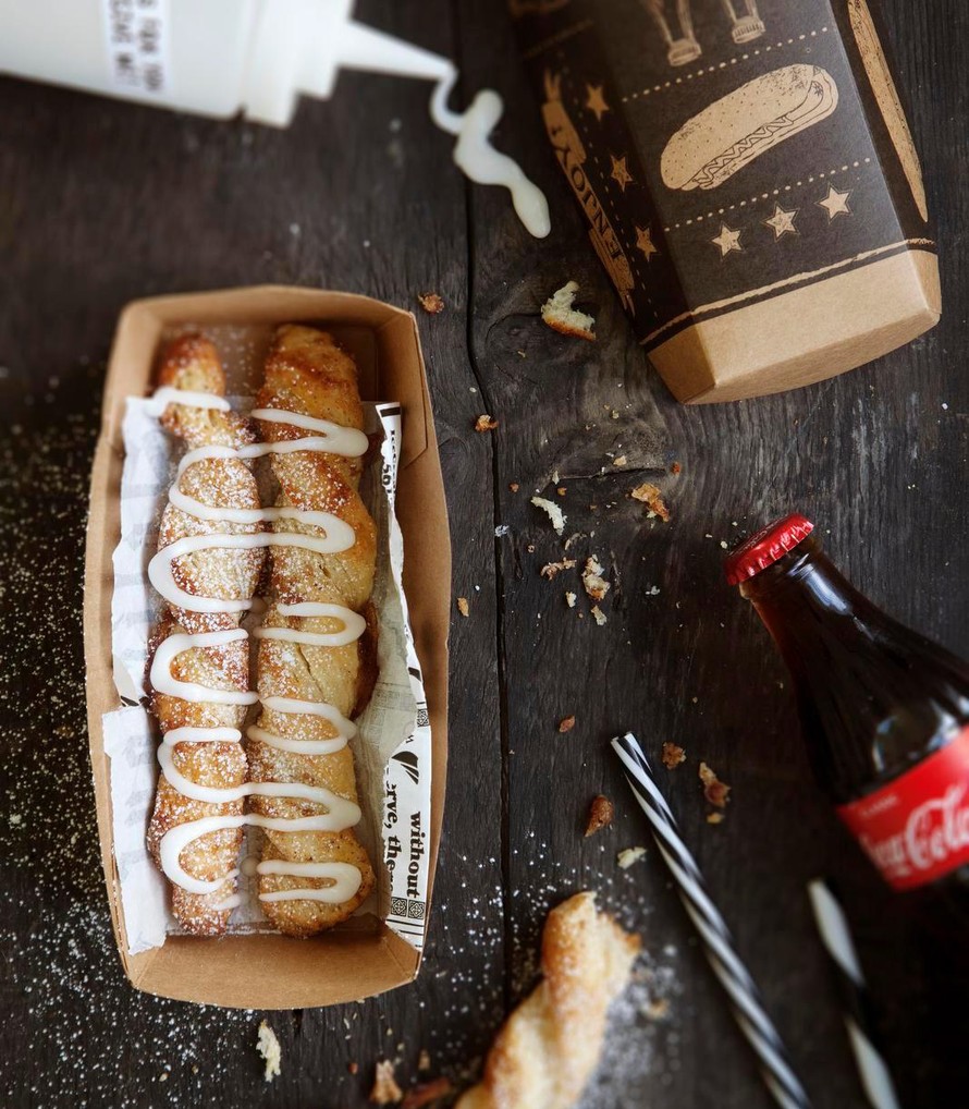- Kuumenna uuni 225-asteiseksi. Voitele tangot valkuaisella. Paista 10-15 minuuttia ja jäähdytä. Sekoita tomusokeri ja colajuoma notkeaksi ja sileäksi kuorrutteeksi. Valuta sitä viinereiden päälle.