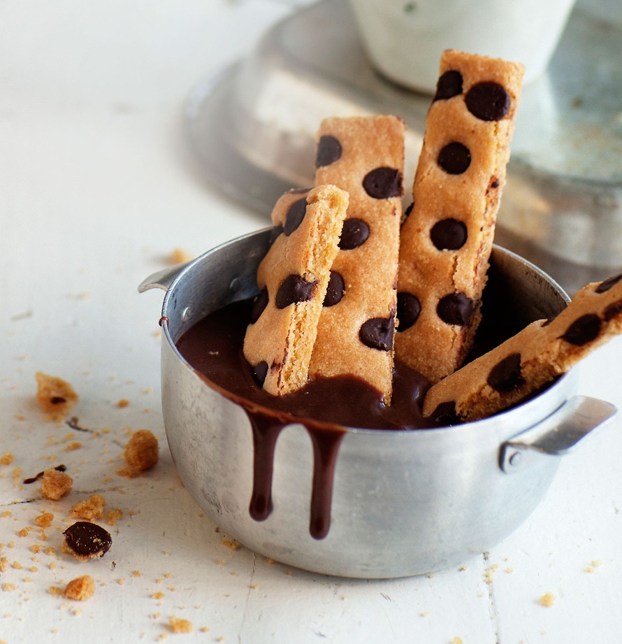 Leivo suklaakeksit tikun mallisiksi ja nautiskele dippaamalla ne tahmeaan suklaa-dinuskidippiin.
