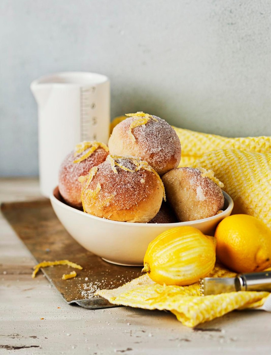 Oheisessa ohjeessa pullat kristallisoidaan paistamisen päätteeksi. Sokeri maustetaan sitruunankuoriraasteella, mutta voit vaihtaa sen halutessasi kaneliin – varsinkin, jos kaneli kuuluu omaan makumuistoosi.
