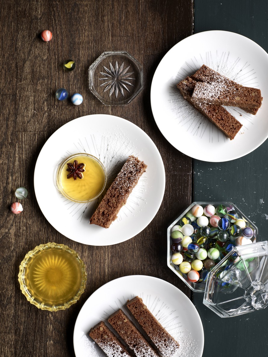 Maustekakku ja appelsiini-rommidippi