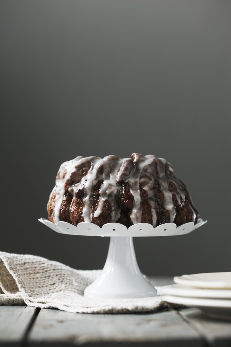 Suussa sulava Monkey bread -kakku valmistuu pullataikinasta ja päälle valutetaan tomusokerikuorrutus.