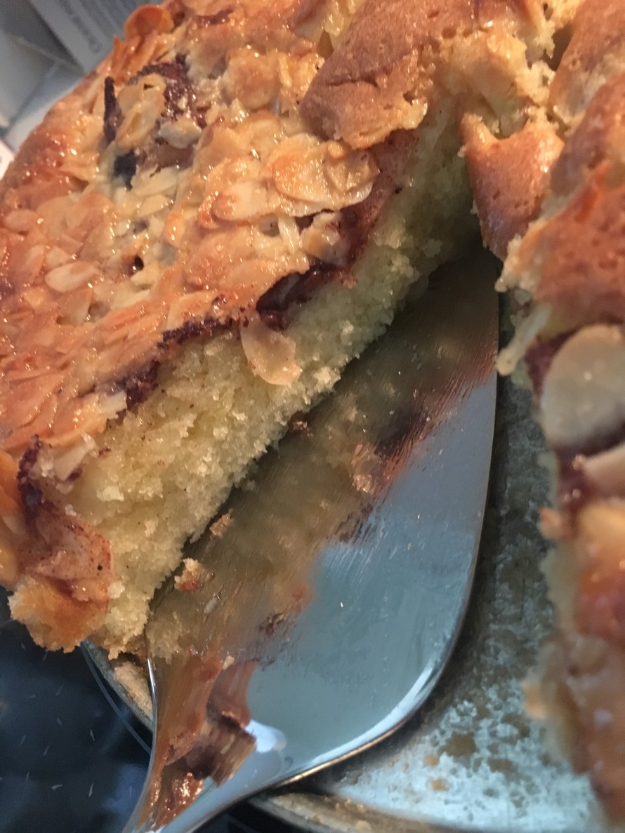Tosca: Sulata voi ja sokeri kattilassa miedolla lämmöllä. Kaada sekaan jauhot ja mantelilastut, sekoita huolellisesti. Lisää lopuksi maito. Kaada lämmin toscaseos kakun päälle ja laita uuniin 200 asteseen n. 8-10 min.