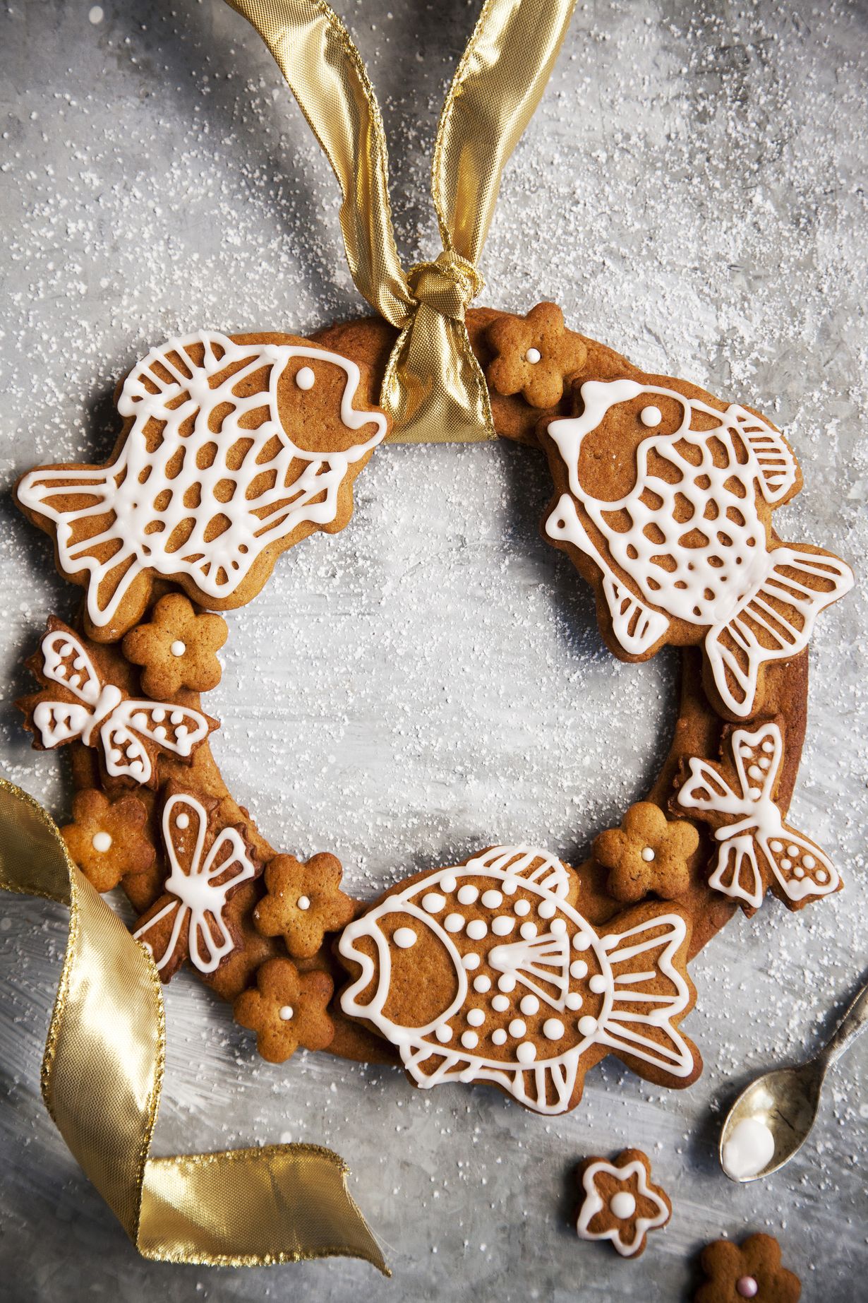 Leivo lahjaksi iki-ihana piparikranssi. Voit käyttää leipomiseen kahden pippurin piparitaikinaa tai soveltaa ohjeella oman kranssisi valmistaikinasta.