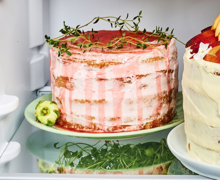 - Kuorruta kakku lopulla täytteellä rennosti läpikuultavaksi. Koristele kakun pinta tuoreilla timjaminoksilla.