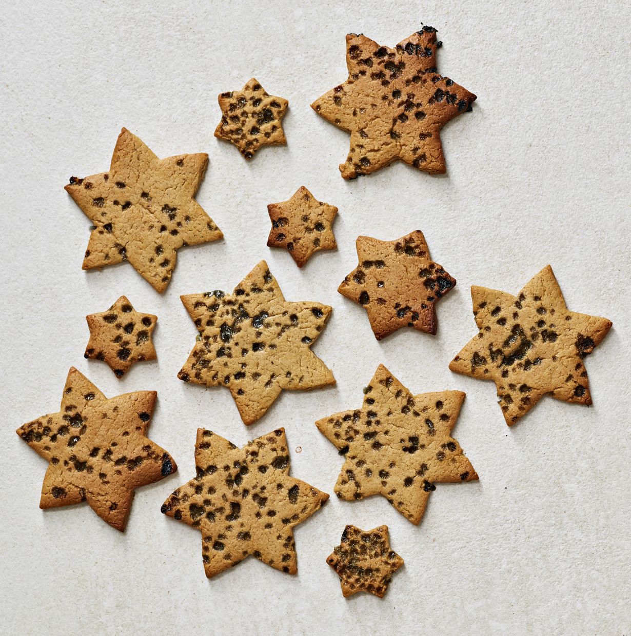 - Kokoa loput taikinasta palloksi ja kauli uudestaan levyksi, leikkaa muoteilla ja paista. Jatka kunnes koko taikina on käytetty.