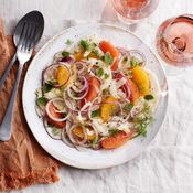 - Sekoita oliiviöljy, limetin mehu, sokeri ja suola keskenään kastikkeeksi.
