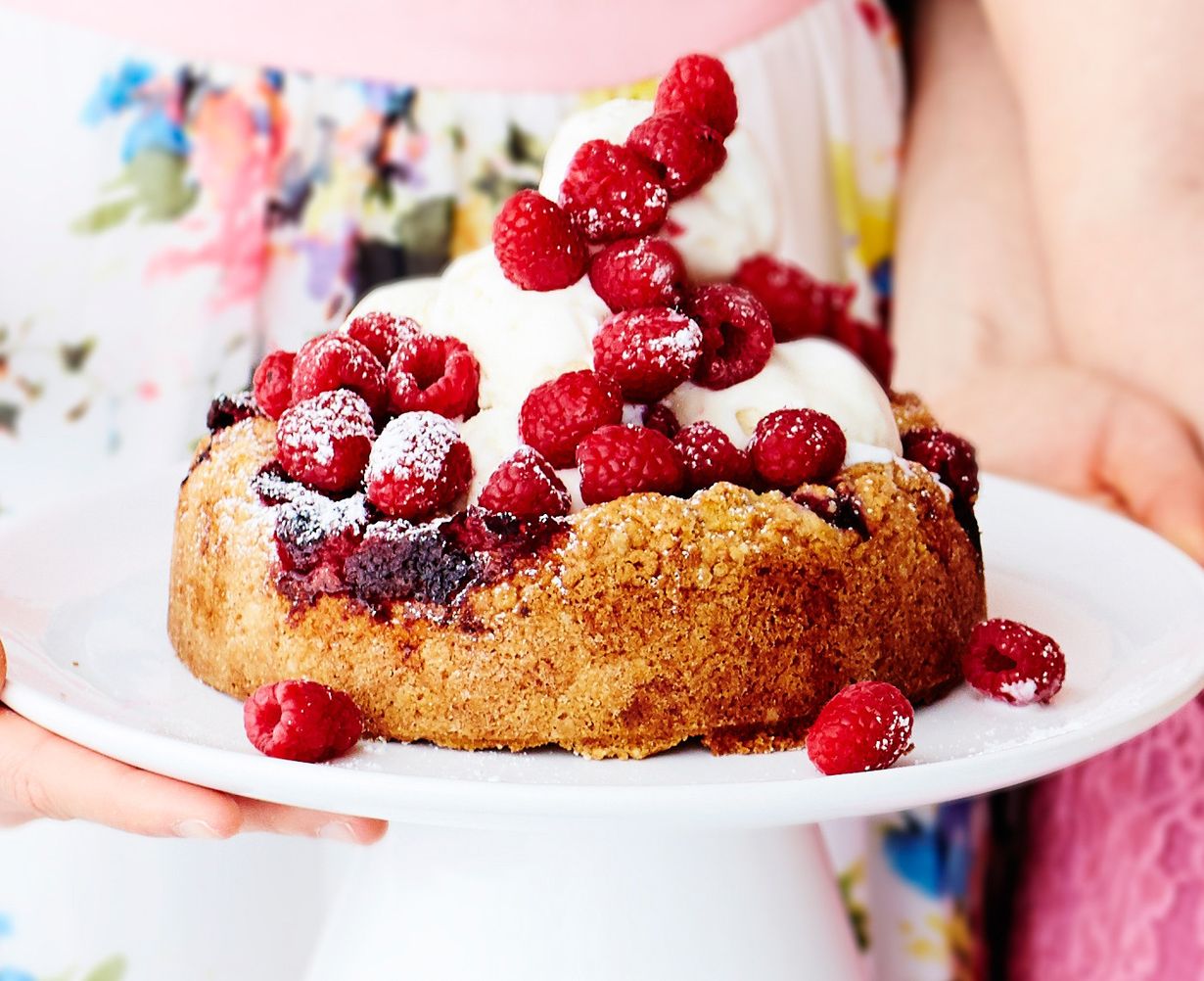 - Paista 200-asteisessa uunissa 30 minuuttia tai kunnes kakkuun painettuun tikkuun ei jää taikinaa. Tarjoa vaniljajäätelön kanssa.