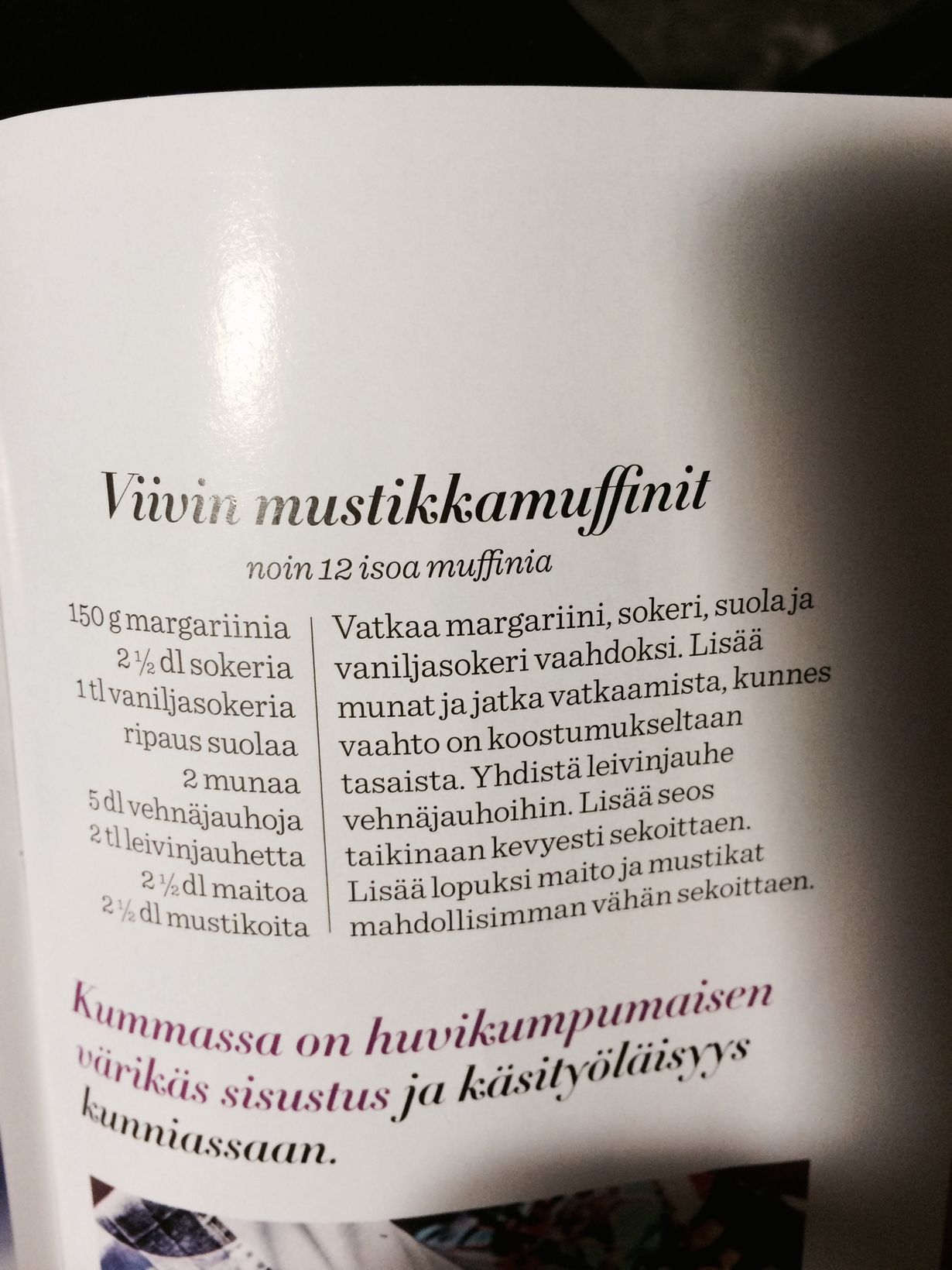 22:00 | 24.9.2014 Mustikka muffinsit Lisää omaan keittokirjaan Tuua Hakola on lisännyt 4 reseptiä Sisältö jatkuu mainoksen alla Sisältö jatkuu mainoksen alla Mustikka muffinsit Lisää kokoelmaan Like 0 Ainesosat Vaiheet Tilaa Glorian ruoka & viini