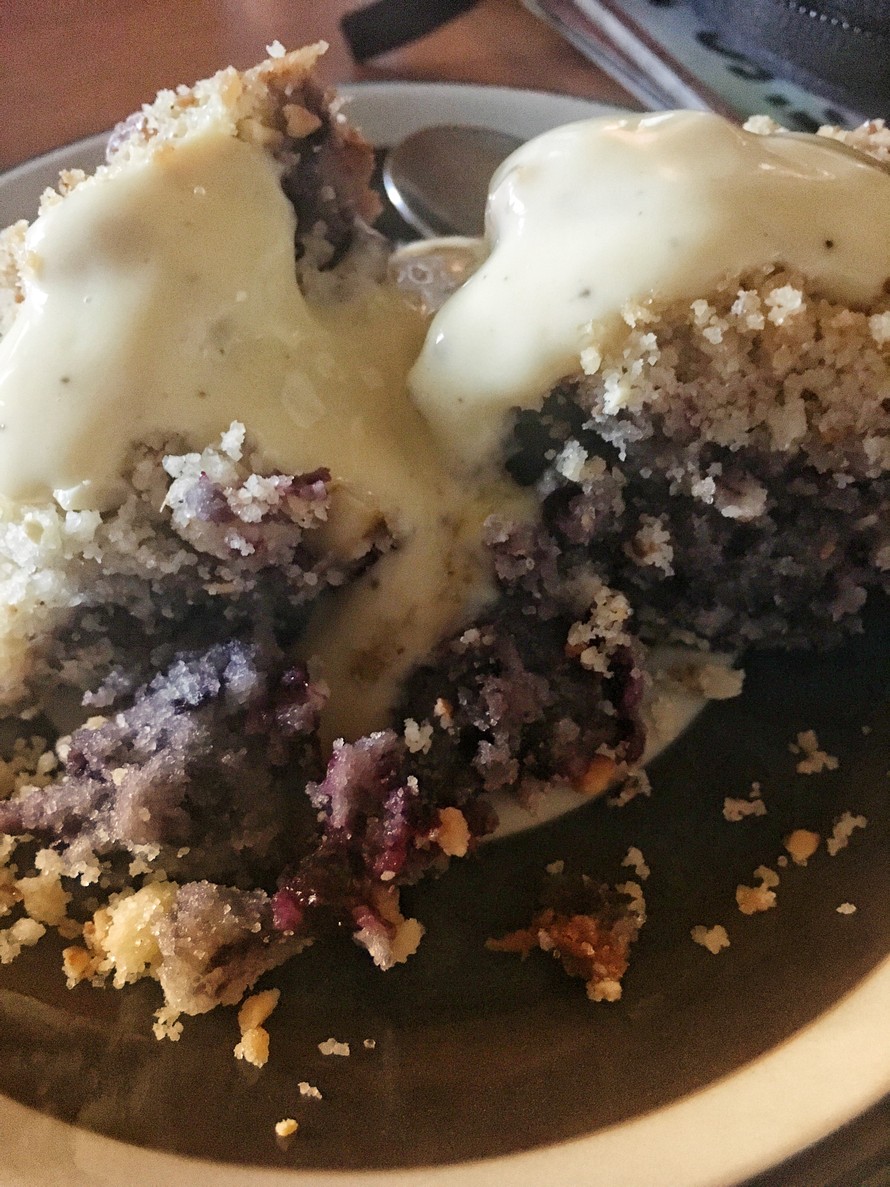 Paista uunin alaosassa 175 asteessa 40 - 45 min tai kunnes kypsä. Jos käytät jäisiä pakastemustikoita, kypsennysaika on n. 47 min.