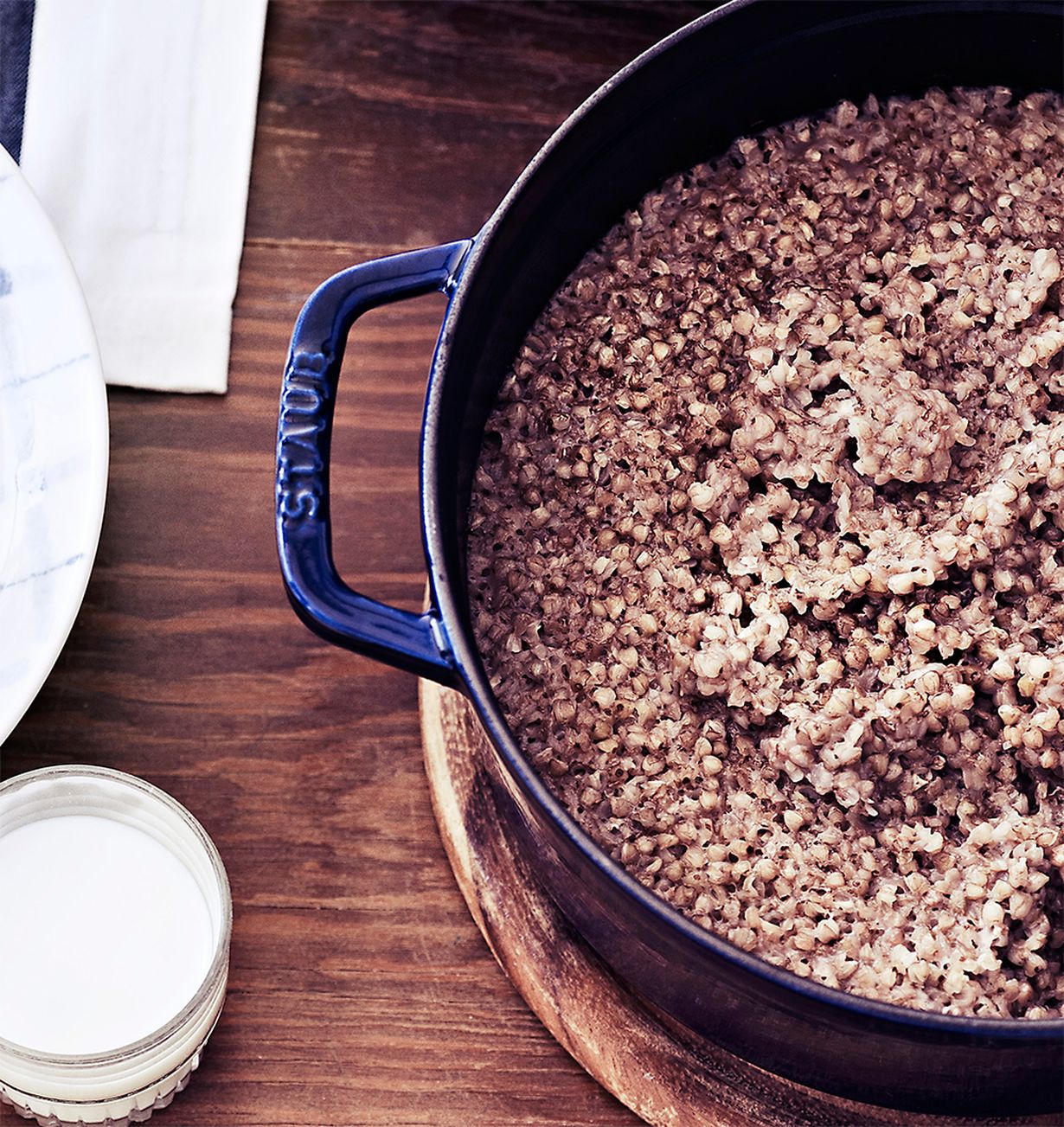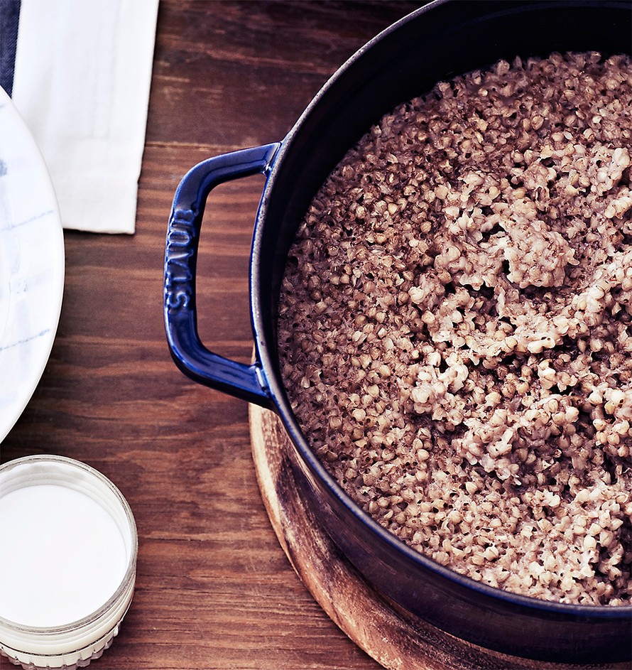 - Kypsennä puuroa 200 asteessa tunnin ajan. Tarkista 30 minuutin jälkeen, onko nestettä riittävästi. Lisää tarvittaessa vettä. Tarjoa puuron kanssa ”voisilmänä” terveellistä kookosöljyä.