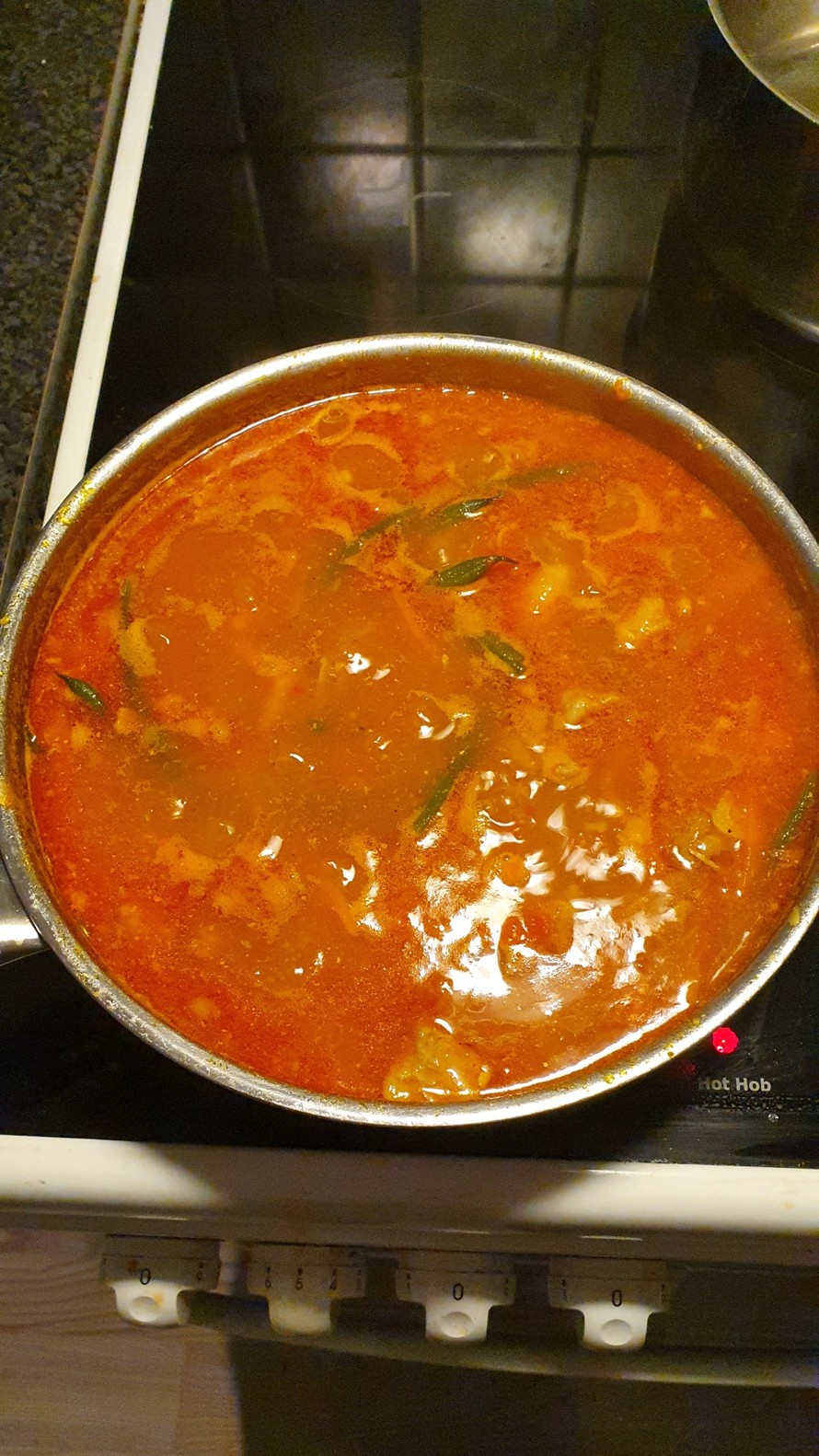 5. Painekattilan ollessa valmis, paineet pois ja kaikki kaadetaan kasvisten päälle. Lisää loput mausteet. Tarkista maku, lisää suolaa tarvittaessa. Anna redusoitua kunnolla. Tuossa mun kuvassa on todella paljon vettä joten siitä 1/3 annoin haihtua. Sitten kun alkaa olemaan paksua kastiketta on se valmis. Aikaa meni vajaa 1 h. Välillä makua tarkistellen.