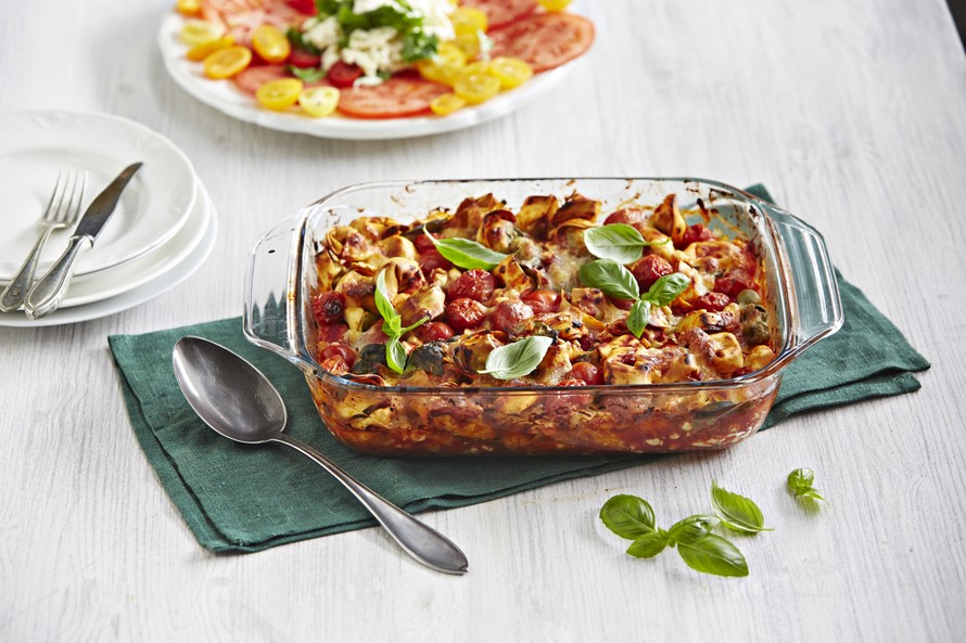 Mifusta ja tortelliineista valmistuu helposti maukas ja näyttävä vuokaruoka.