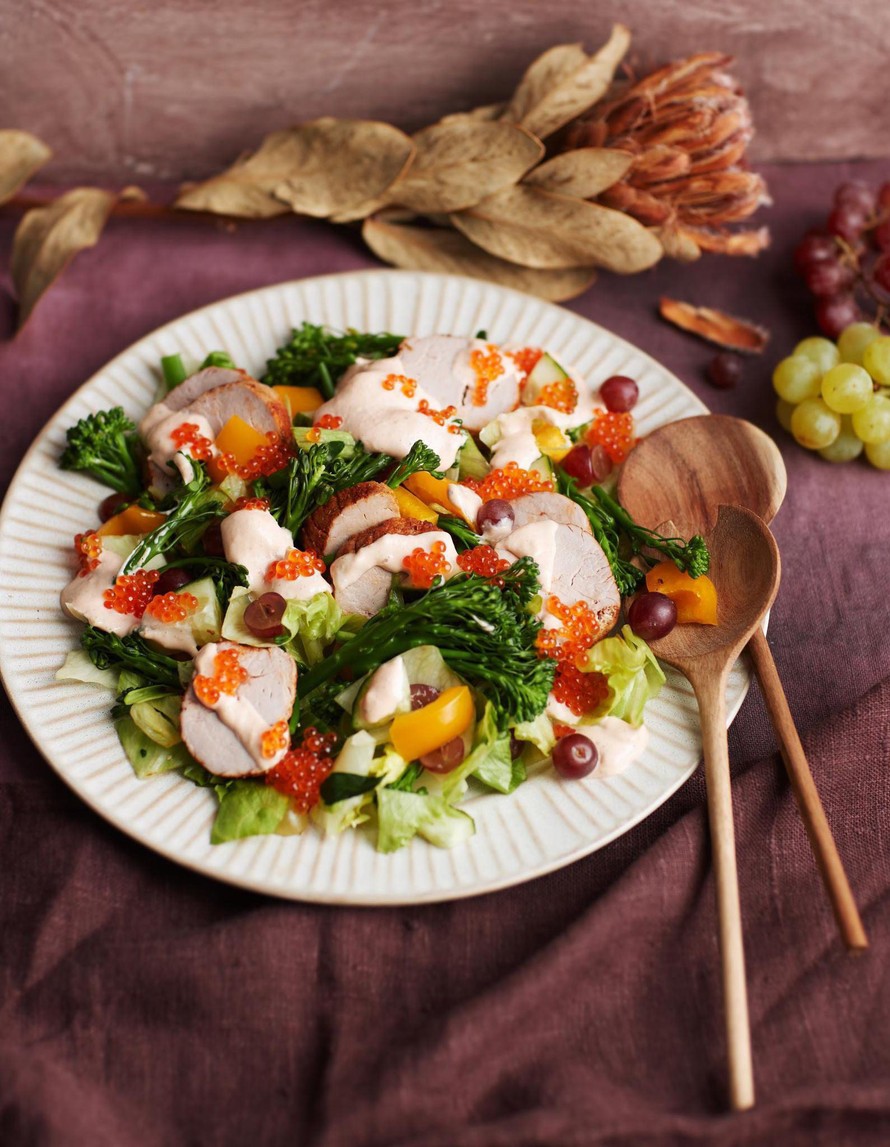 Oskarinleipä on vuosikymmenten takaa tuttu ravintolaklassikko. Alun perin leivän päälle laitettiin possupihvi, parsaa ja katkarapuja. Salaattiversiossa merellisyyttä tuo mäti. Choron-majoneesi on muunnelma béarnaisesta.