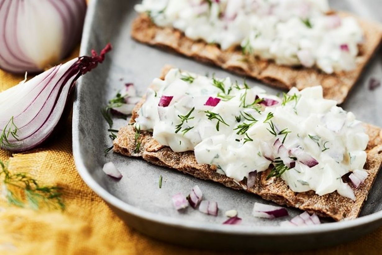 Treenin päälle maistuu rukiisen näkkileivän päällä tarjoiltava proteiinipommi, jonka salaisuus on kananmunanvalkuainen ja sinappi.